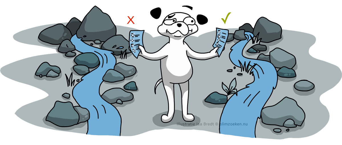 Op start.slimzoeken.nu staan meer dan 500 zorgvuldig geselecteerde bronnen. Sommige bronnen zijn breed, met veel verschillende onderwerpen (zoals Natuurwijzer en Het Klokhuis), andere gaan over een specifiek onderwerp, zoals de Watersnoodramp, de Hollandse Waterlinie of het Riool. Allemaal te vinden onder het Thema Water. Veel van de getoonde sites of pagina’s zijn speciaal gemaakt voor kinderen, andere zijn informatieve sites voor een algemeen publiek. Vrijwel alle gelinkte bronnen zijn gemaakt door professionals met kennis van het onderwerp. Alles is geschikt voor gebruik in de klas.